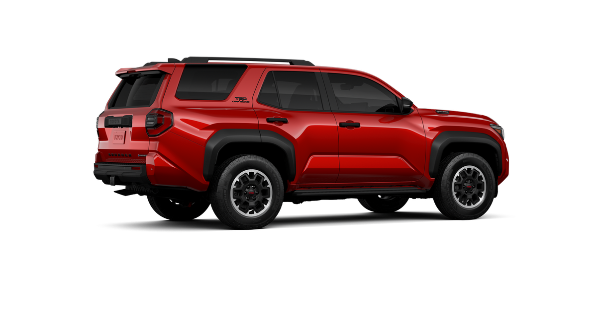 - Black honeycomb-style grille, mirror caps, door handles and overfenders; color-keyed rear spoiler; black "TRD OFF ROAD" and "4RUNNER" badges